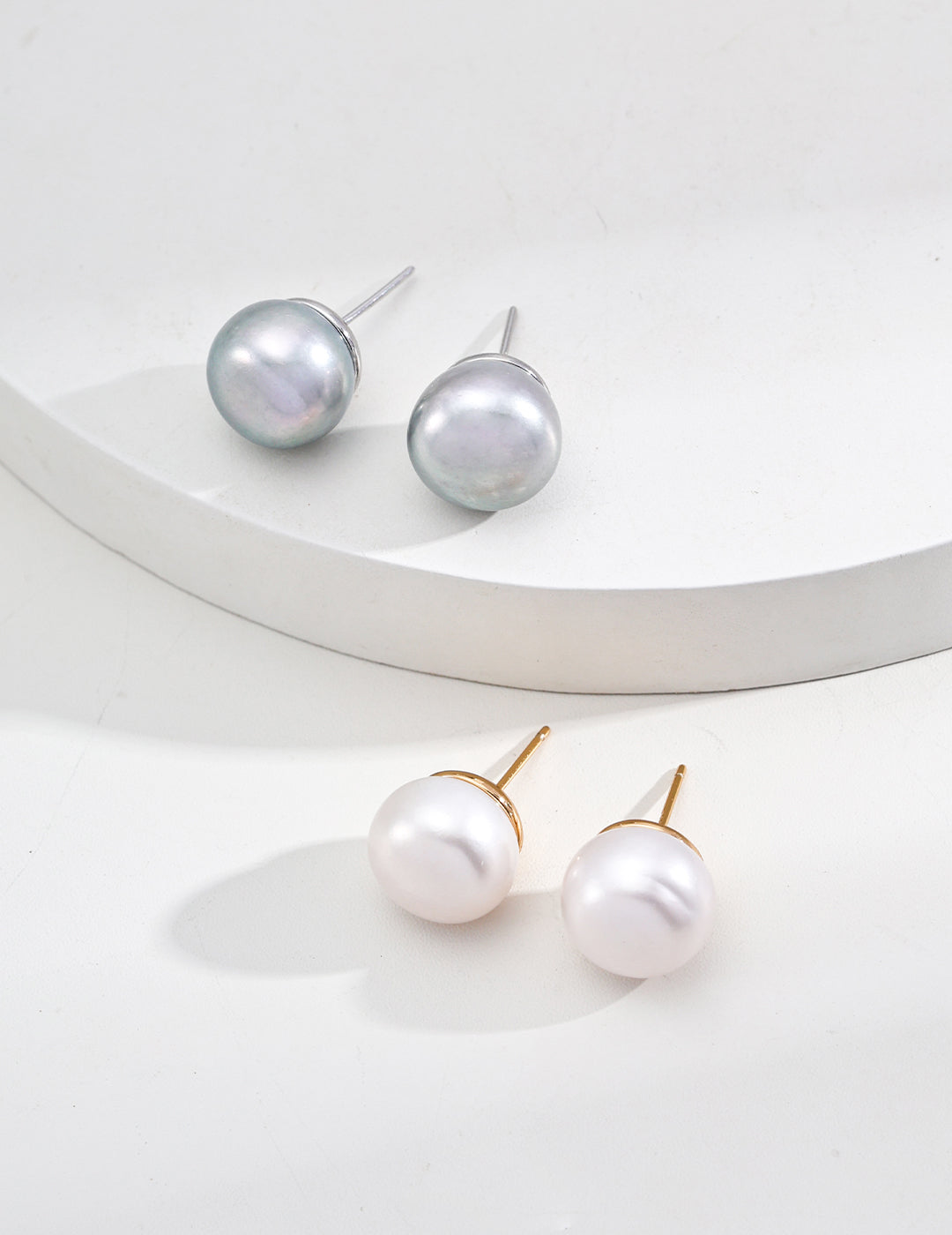 The Lustrous Pearl Stud Earrings embody timeless elegance with their minimalist design. Made from 925 sterling silver, these earrings are available in three sophisticated finishes: vintage gold, platinum, and natural gray pearl. Featuring 12.5mm natural pearls, each pair radiates a soft, luminous glow, perfect for adding a touch of refinement to any outfit. Note: The gray pearls may have minor natural growth patterns on the sides, adding to their unique charm. Ideal for daily wear or special occasions, these earrings are a must-have for pearl enthusiasts.