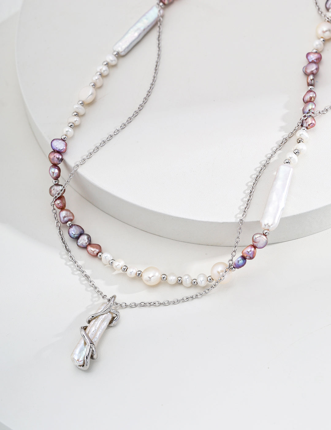 Crafted with 925 sterling silver and natural pearls, the "Pure Radiance" necklace exudes a refined elegance that’s both modern and timeless. The design features lustrous pearls in various unique sizes, approximately 3mm, 5mm, 6mm, and 3520mm, creating a textured harmony against the platinum-like sheen of the silver. With a chain length of about 38cm and an additional 6cm extender, it offers versatility for layering or wearing alone as a statement. The iridescent hues of the pearls, set against the cool tones of silver, make "Pure Radiance" an exquisite choice for those who appreciate natural beauty and fine craftsmanship.